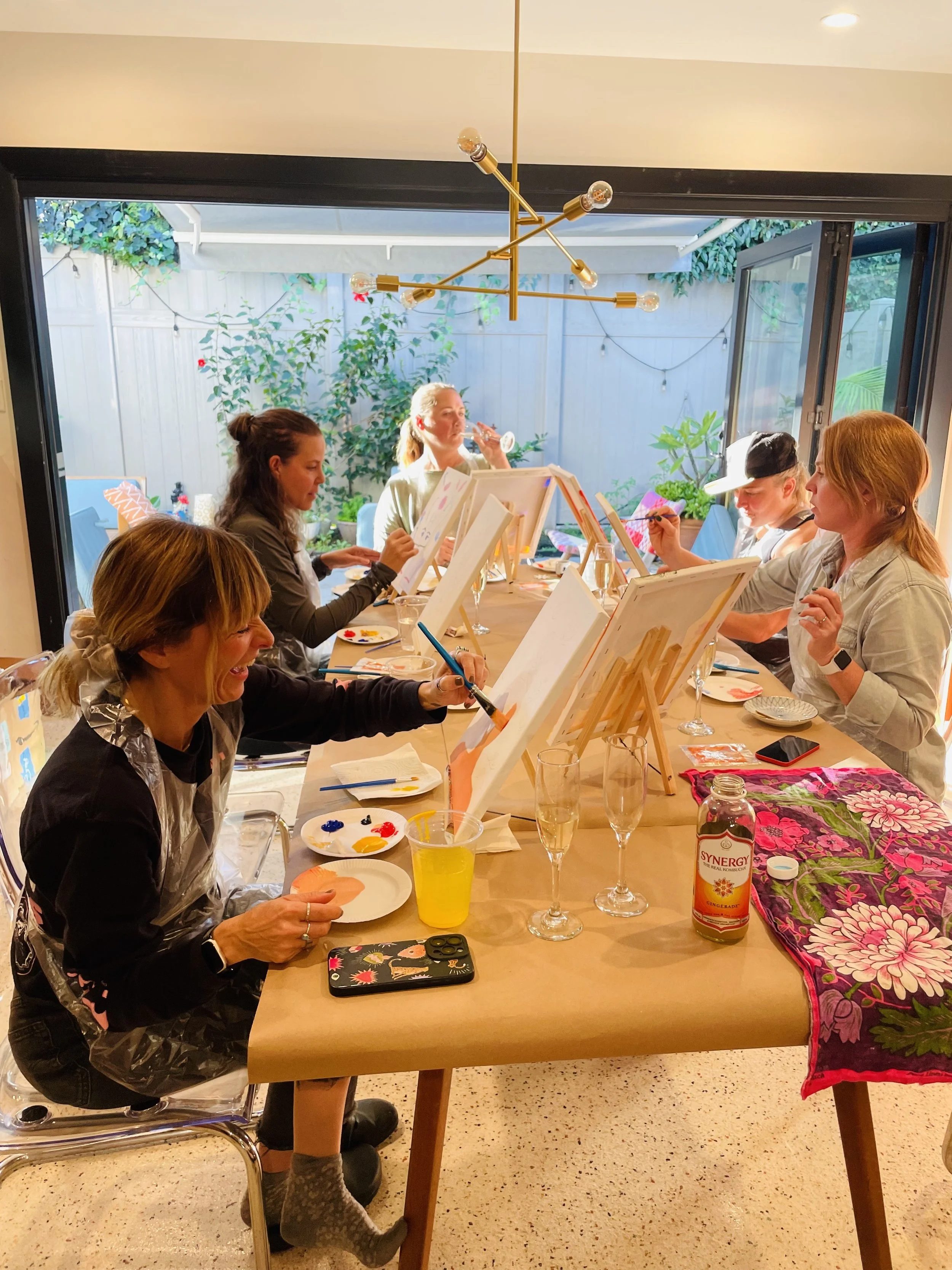 Most sessions are 90 minutes, which gives everyone time to complete their painting without feeling rushed. We can adjust timing for your specific needs.