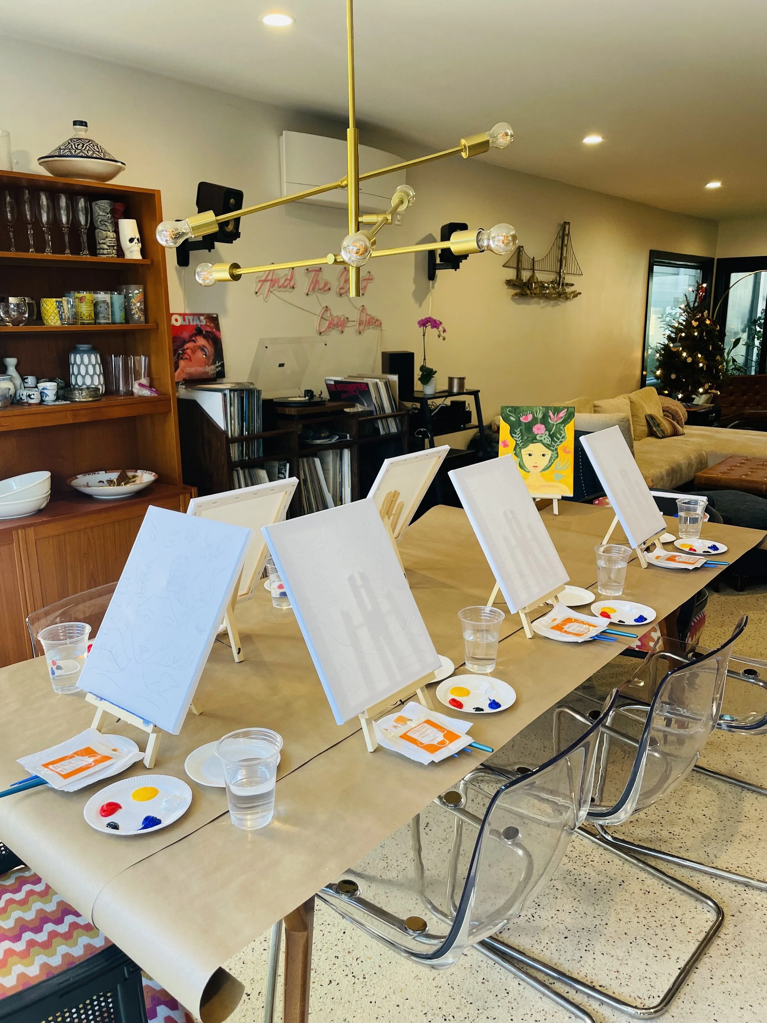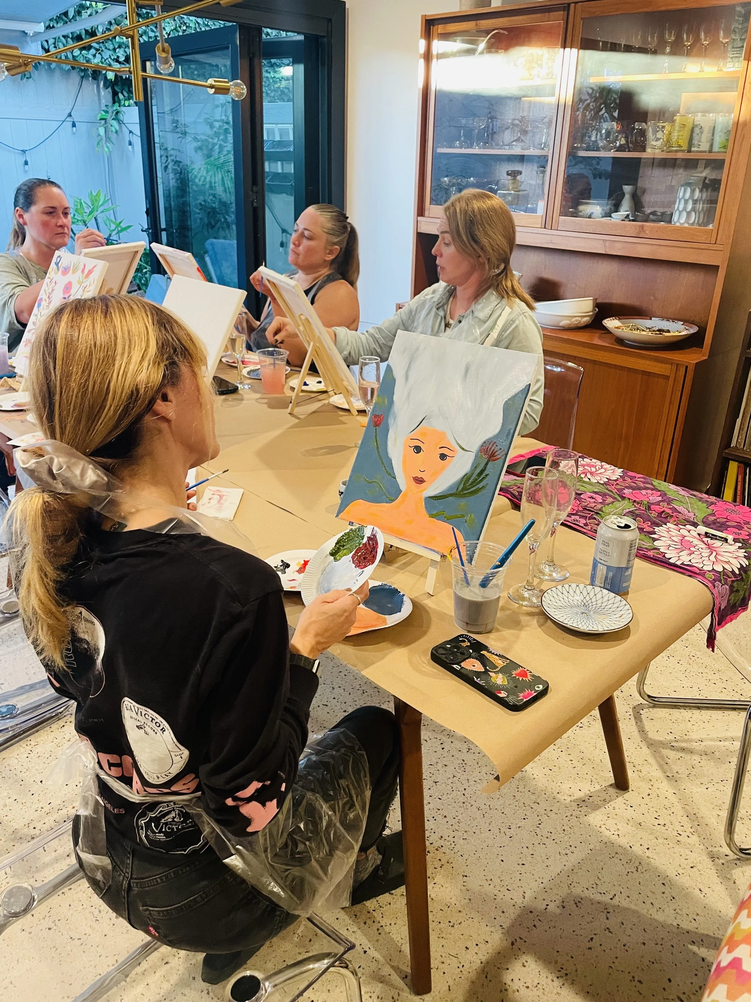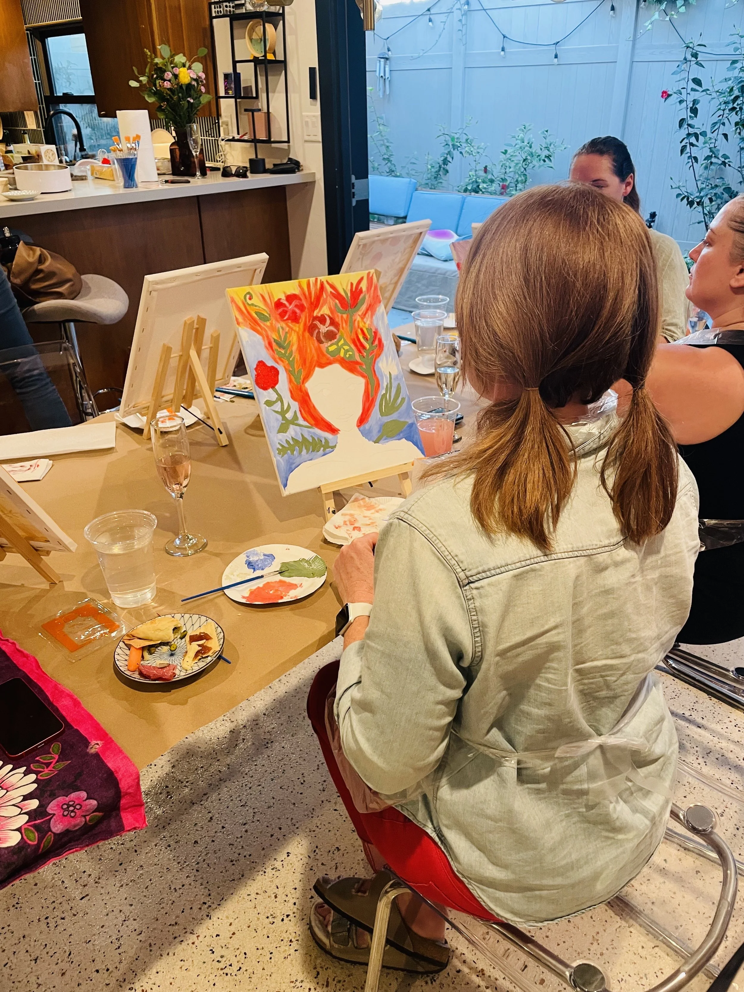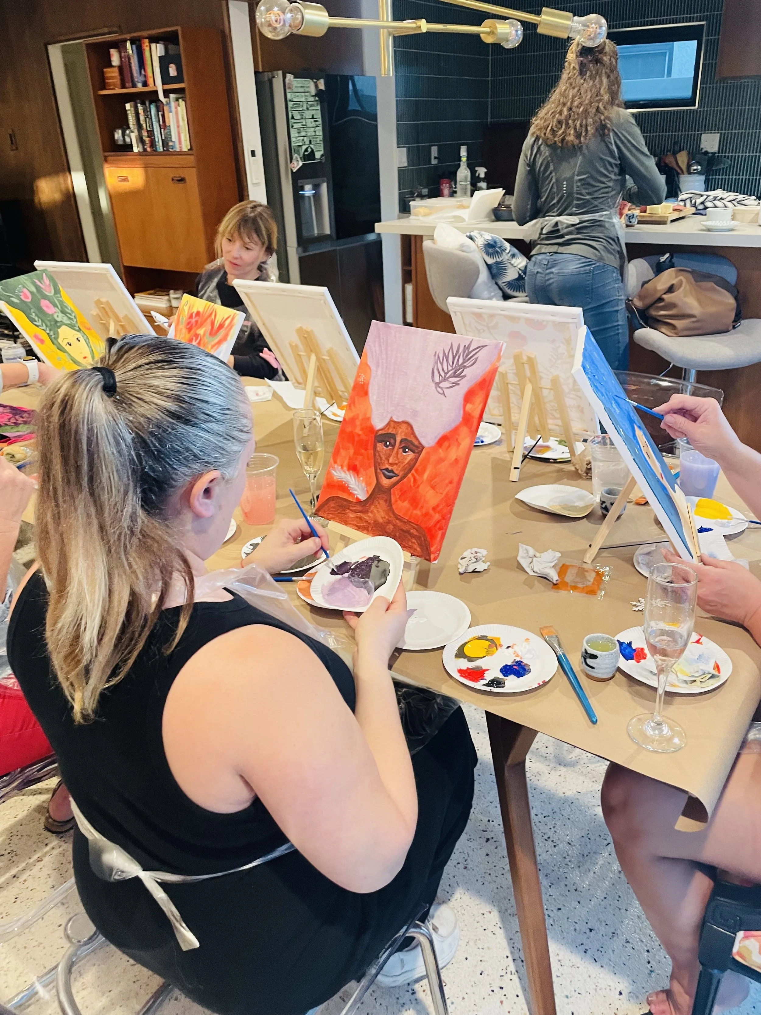We offer paint parties for private events, corporate team building, and senior living facilities. This includes birthday parties, bachelorettes, women’s groups, book clubs, church groups, synagogue groups, wellness circles, and assisted living and memory care facilities.